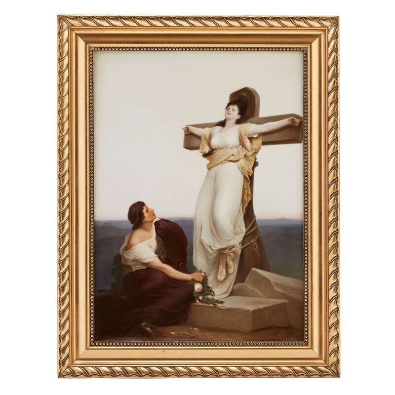 A large Berlin (K.P.M.) painted porcelain plaque, Martyr's Farewell late 19th century, signed Carl Meinelt