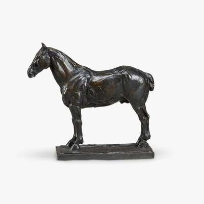 Bronze, dark brown/black patina, modeled in the form of a standing horse, signed in cast "Dalou", stamped "Cire Perdue A.A. Hébrard "