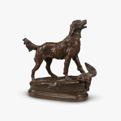 After Alfred Barye (French, 1839-1882) Eva, Setter with Game Bird