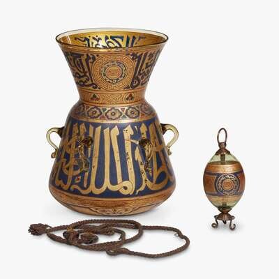 French Mamluk style gilt and enameled glass mosque lamp late 19th century
