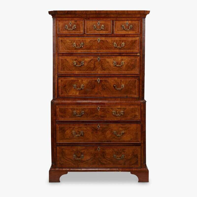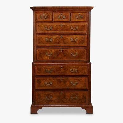 George II feather-banded walnut and burl walnut chest on chest circa 1740