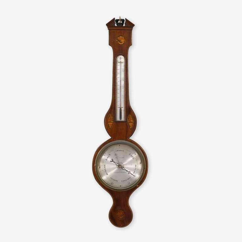 George III marquetry inlaid mahogany wheel barometer early 19th century