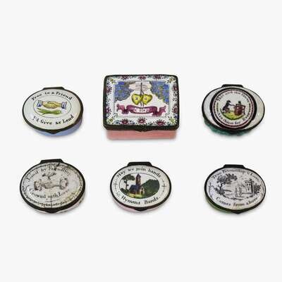 Group of English enameled patch boxes 18th/19th century