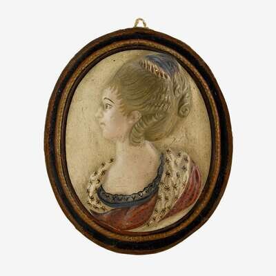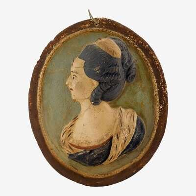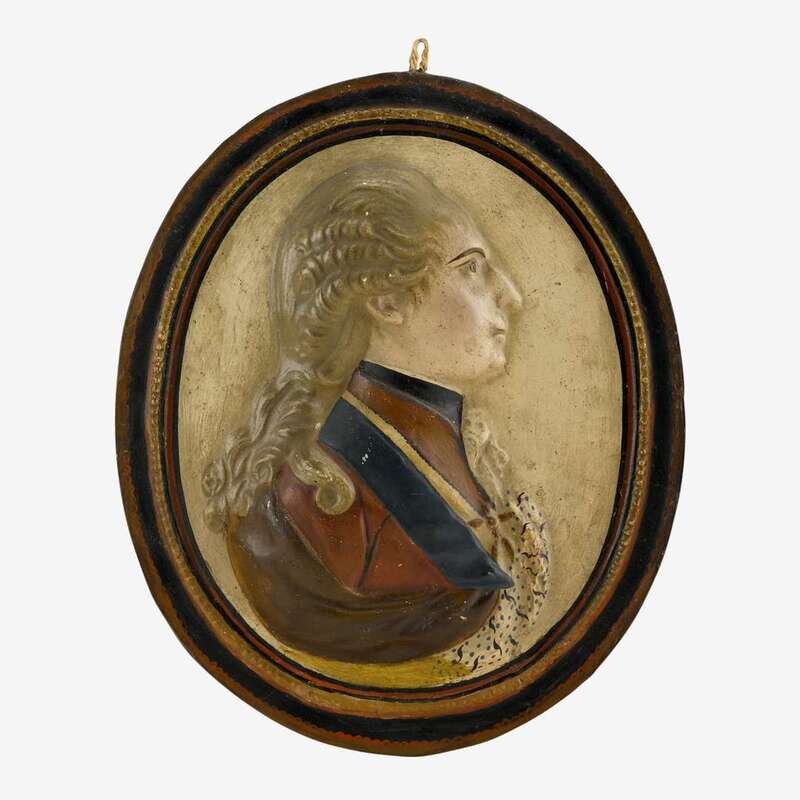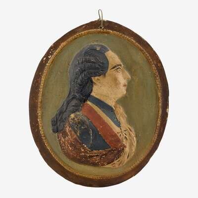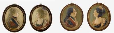 Two pairs of polychrome molded papier-mâché commemorative plaques of George III and Queen Charlotte 18th century