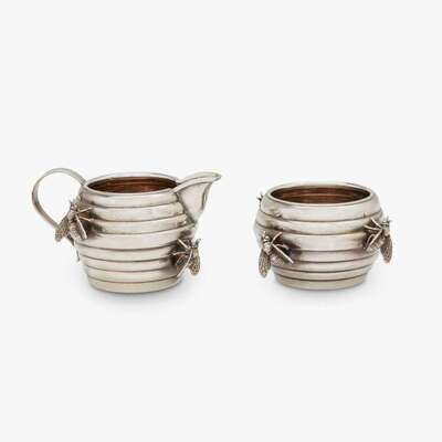 Elizabeth II 'Thistle Bee' silver creamer and sugar Thistle & Bee, Birmingham, 1999-2000