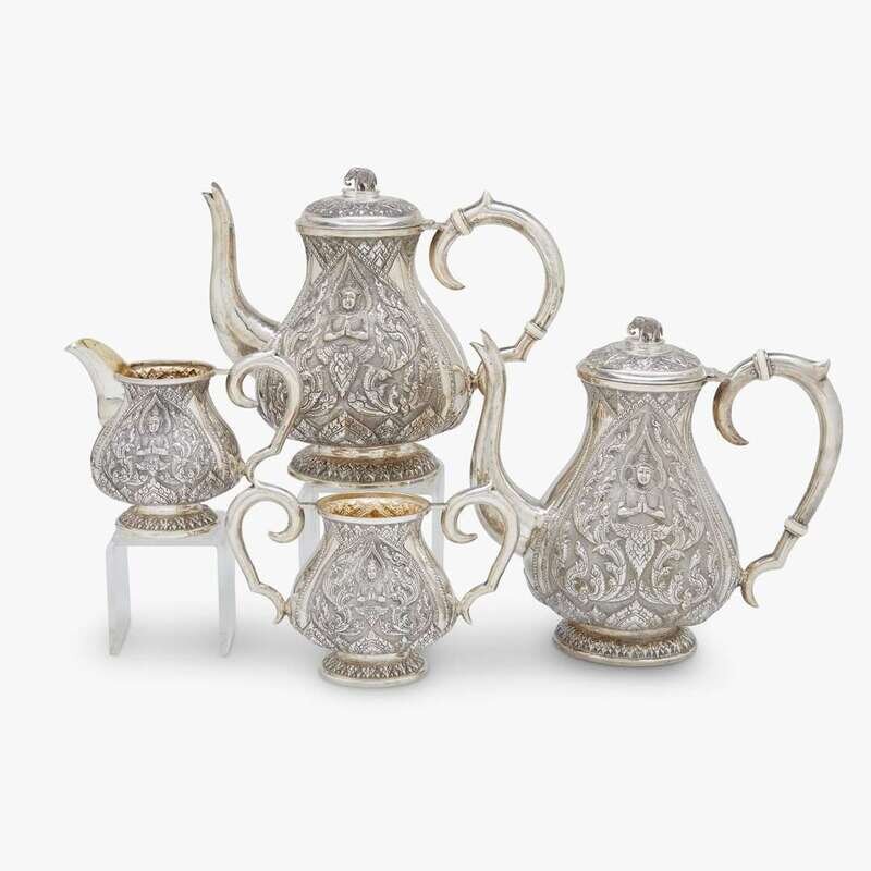 Four-piece Thai silver tea and coffee service Siam, 20th century