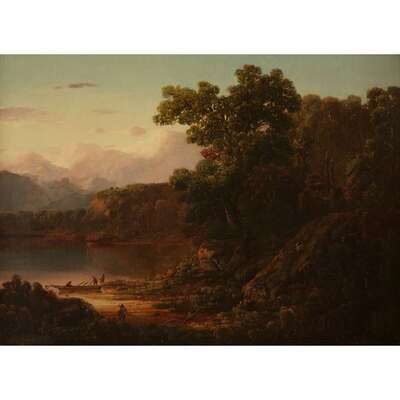 WILLIAM LOUIS SONNTAG (AMERICAN 1822-1900) LANDSCAPE WITH FIGURES ON A BANK