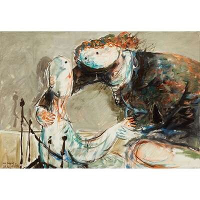 YOSL BERGNER (ISRAELI B. 1920) FIGURES IN AN INTERIOR