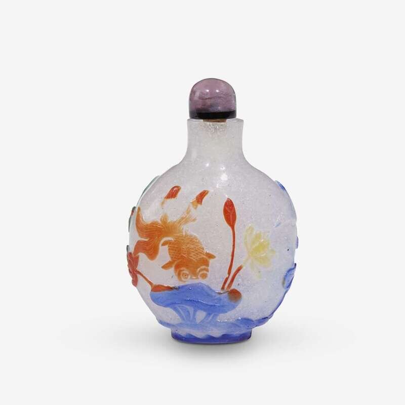 A Chinese 'gold fish' glass overlay snuff bottle 19th century