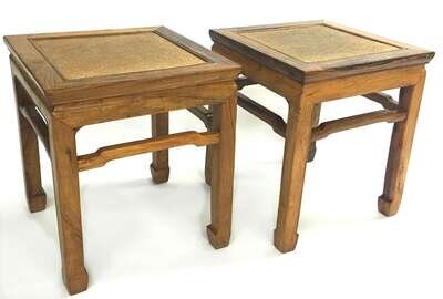 of typical waisted form with woven seats, high humpback stretchers and hoof feet.