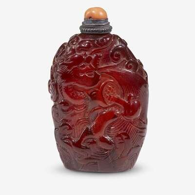 A Chinese carved amber 'dragon' snuff bottle 19th century