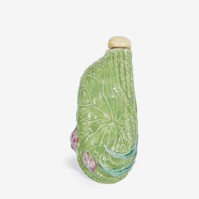 A Chinese porcelain 'lotus' snuff bottle 19th century