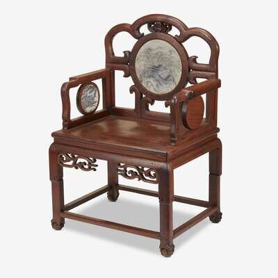 A Chinese marble-inset hongmu chair 1st half 20th century
