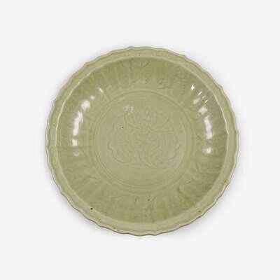 A large Chinese celadon glazed charger early ming dynasty