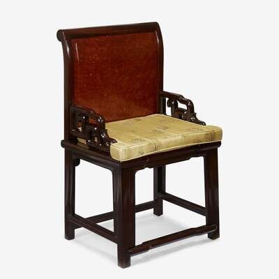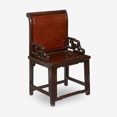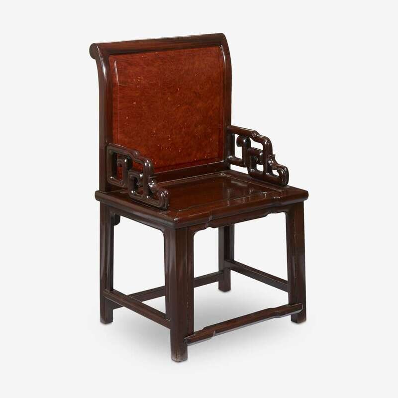 A Chinese hongmu and burlwood side chair early 20th century