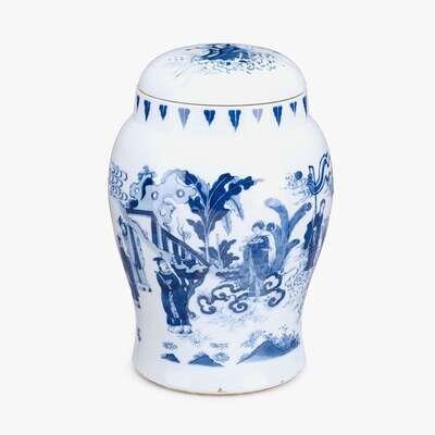 A Chinese blue and white porcelain covered jar decorated with figural scene 17th/18th century