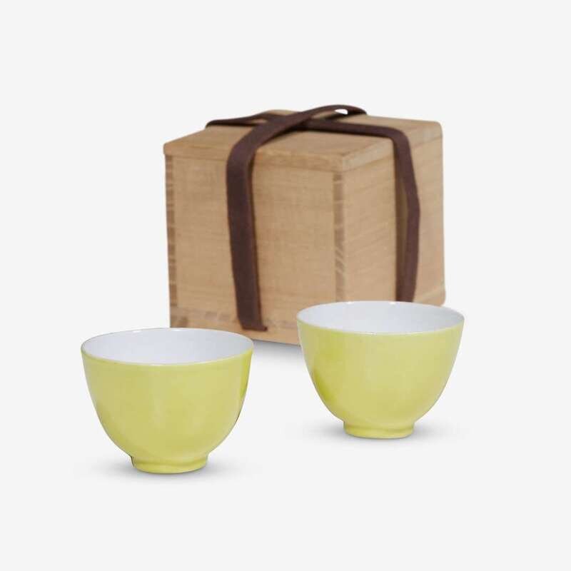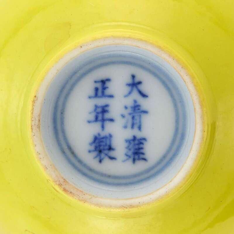 A pair of Chinese lemon-yellow glazed cups yongzheng six character marks and possibly of the period