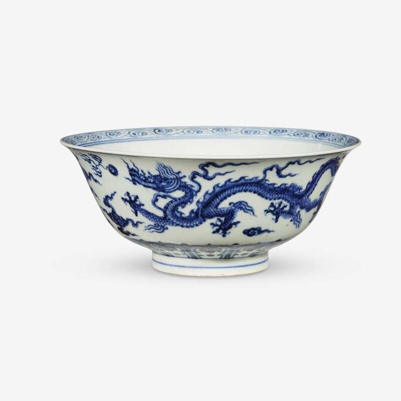 decorated in the Xuande style with sinuous five-clawed dragon.