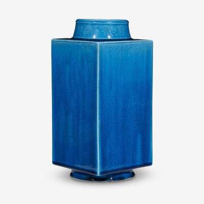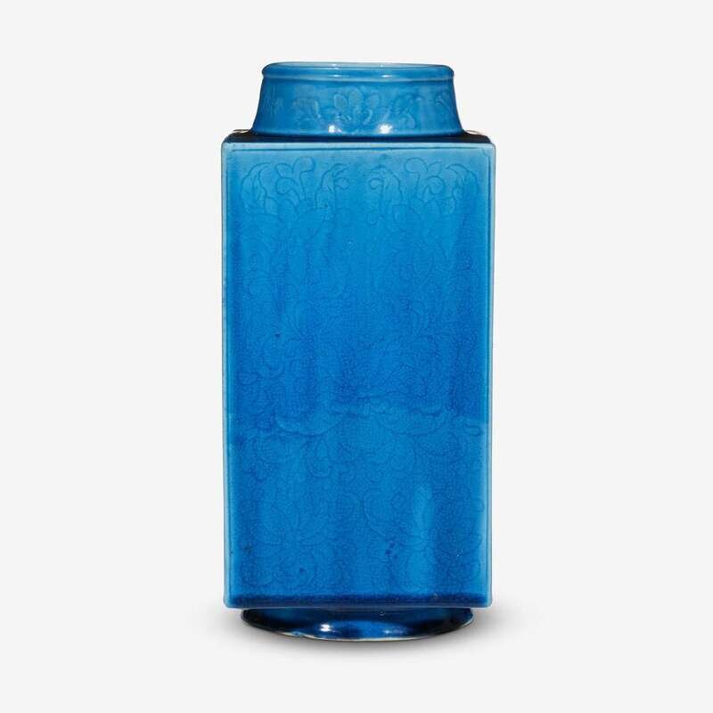 A Chinese blue glazed porcelain 'cong' vase 18th century