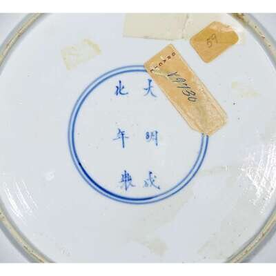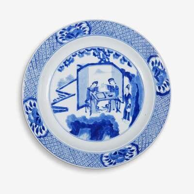 A Chinese blue and white 'court scene' plate chenghua six character mark, 18th century