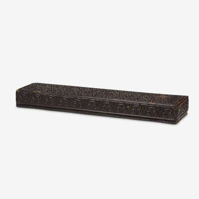 A rare Chinese tixi black lacquer elongated rectangular box and cover yuan dynasty