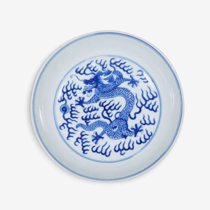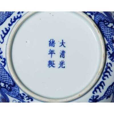 A Chinese blue and white 'dragon' plate guangxu six character mark and of the period