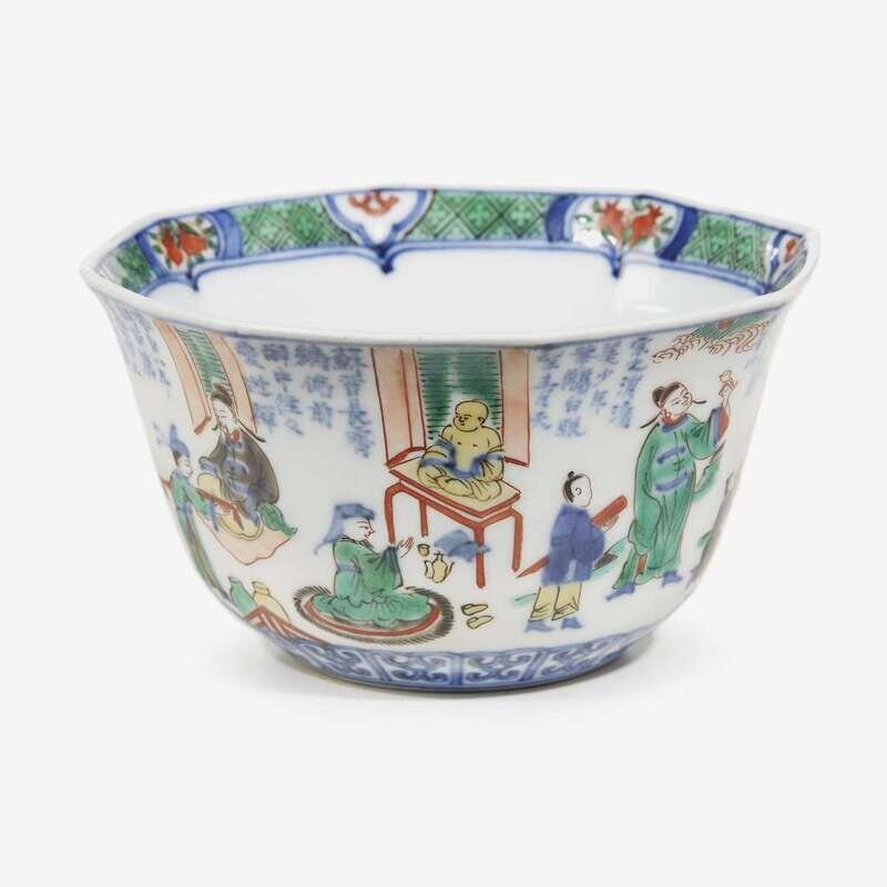 A Chinese famille verte octagonal cup kangxi six character mark, late qing dynasty