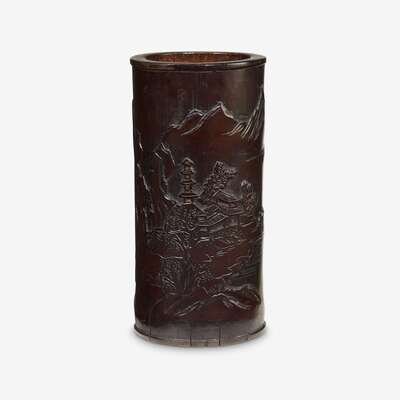 A Chinese carved bamboo brush pot, bitong qing dynasty