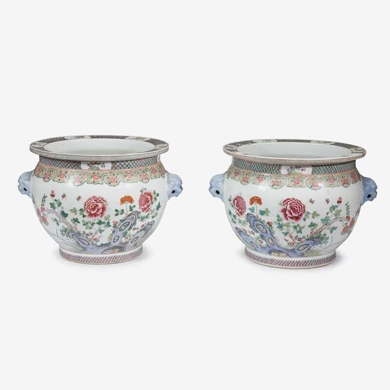 A large pair of Chinese famille rose porcelain fish bowls 20th century
