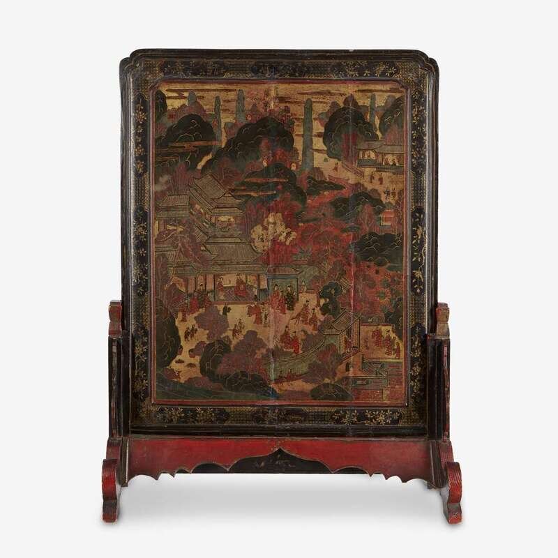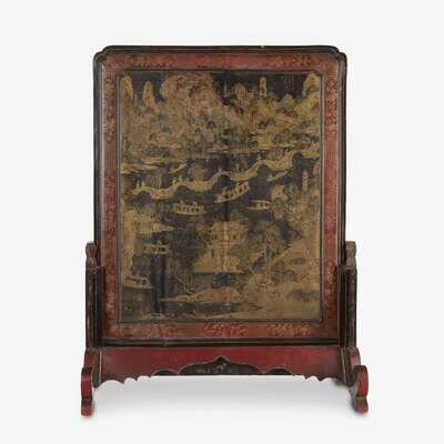 A Chinese gilt and polychrome lacquer 'bridges' table screen late ming dynasty