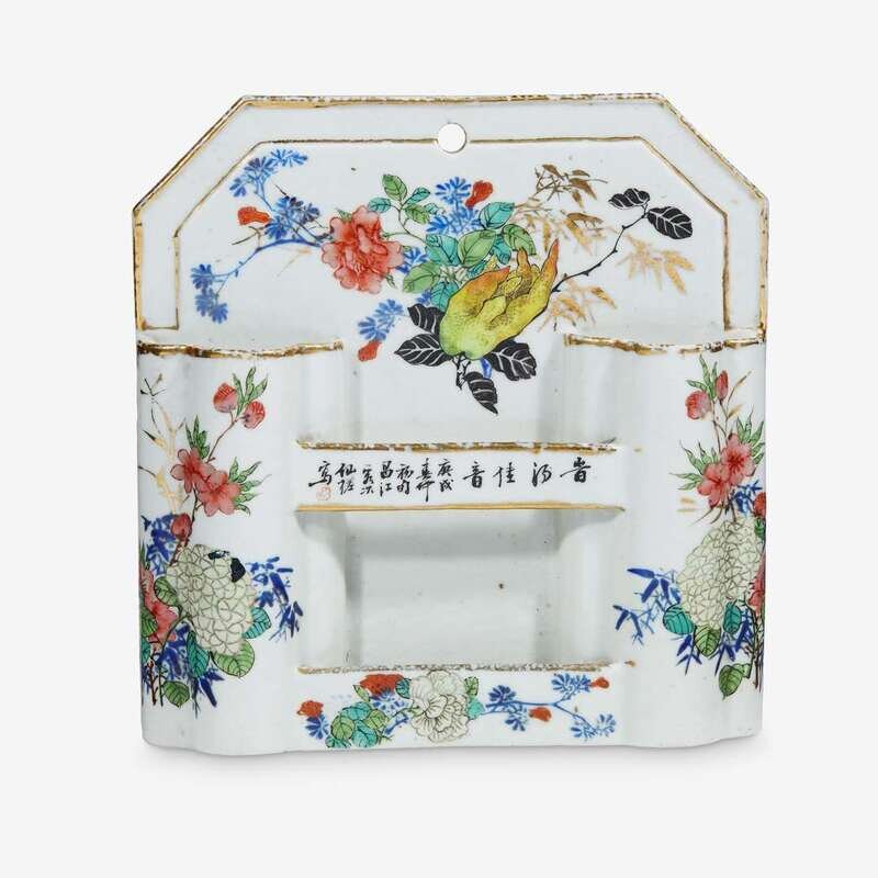 decorated in vibrant enamels to show flowers and a buddha's hand citron.