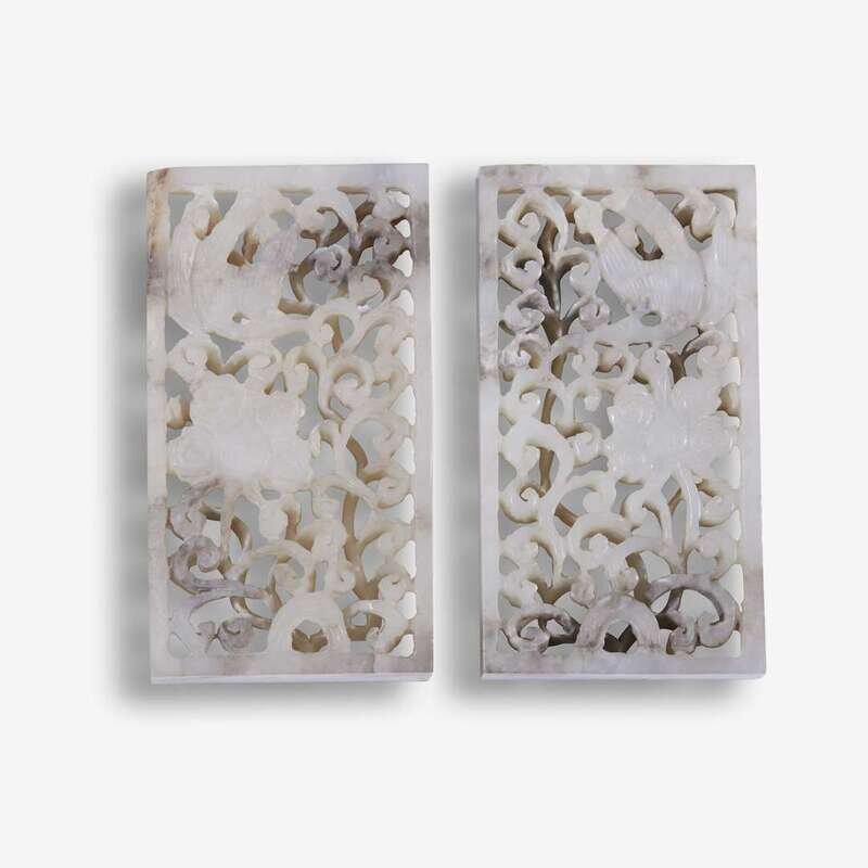 A pair of Chinese gray and white jade reticulated plaque ming dynasty