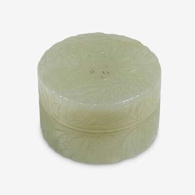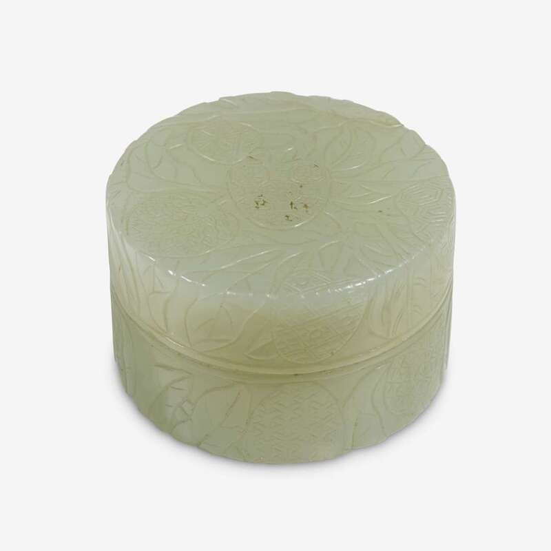 A small and fine Chinese celadon jade 'lychee' circular box and cover 17th century