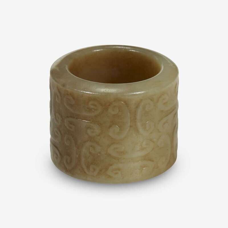 with cloud motifs carved in low relief surround the exterior, the stone of a pale grayish green color.