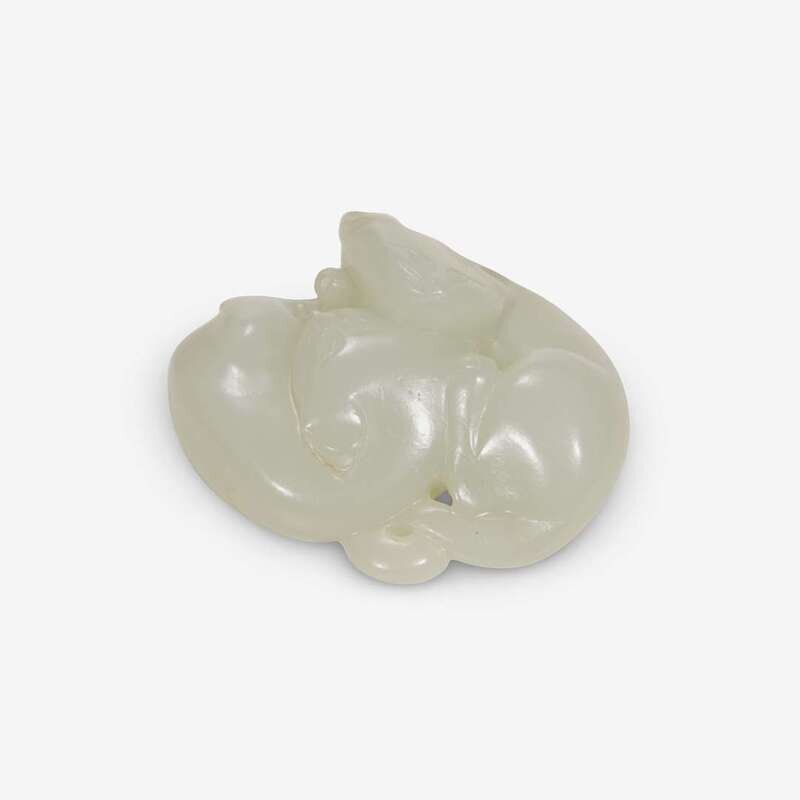 of rounded form, depicting two nestling huan, stone of true white hue.