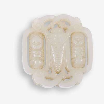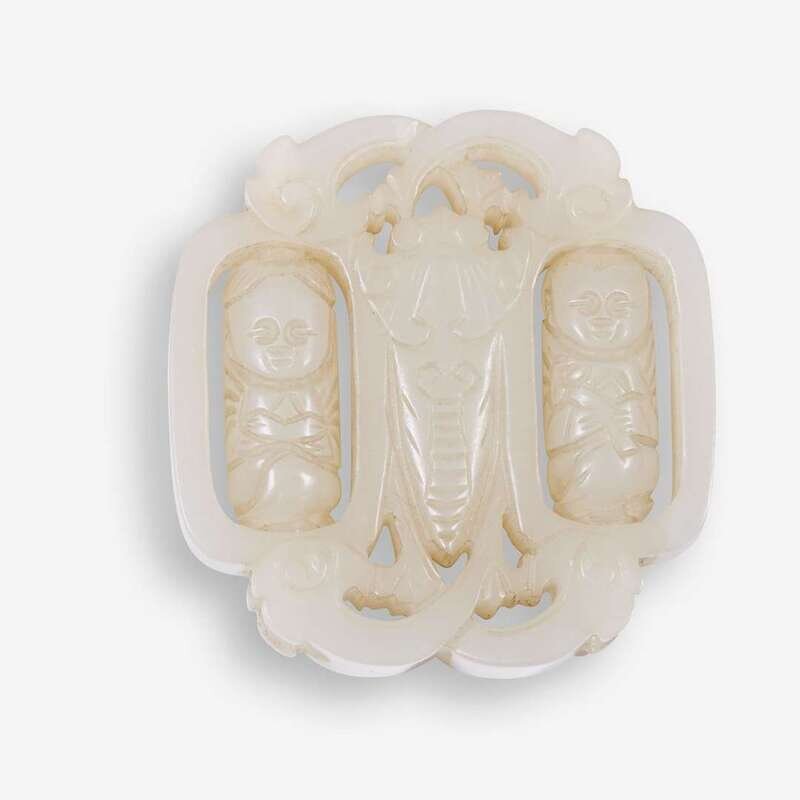 A Chinese white jade revolving 'boy and girl' pendant possibly ming dynasty