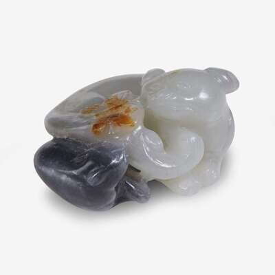 carved to show two frolicking badgers, cleverly worked from the gray and white sections of the stone.