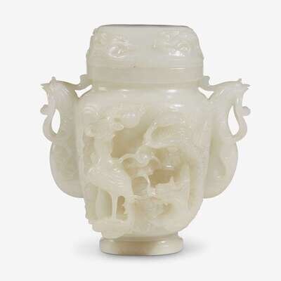 A Chinese white jade 'dragon and phoenix' vase and cover late qing dynasty