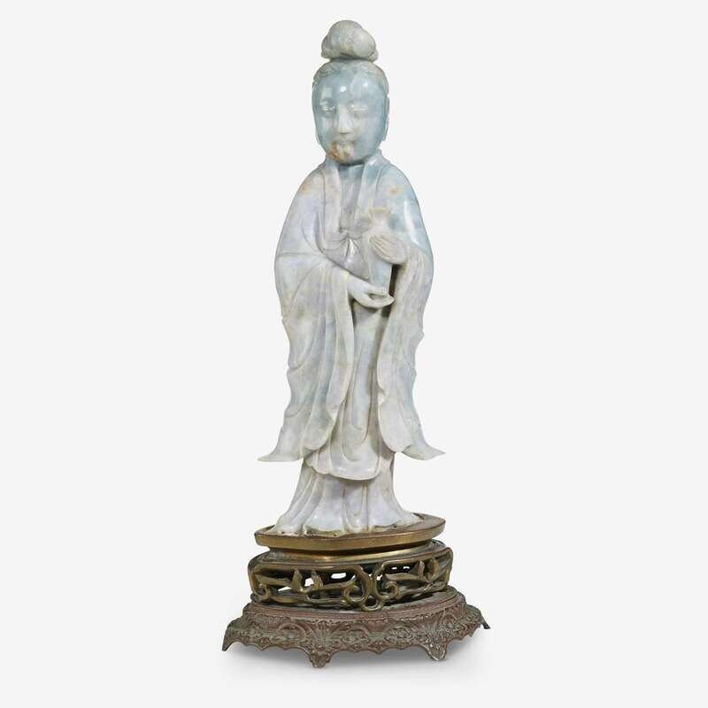 A large Chinese jade figure of Guanyin holding a sacred vase 19th/20th century