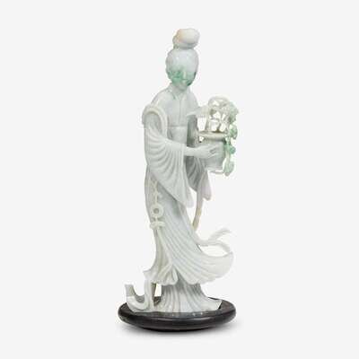 A Chinese jadeite figure of a beauty holding basket 20th century