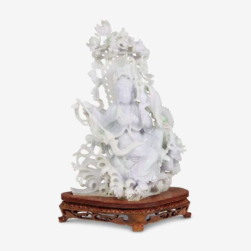 A Chinese carved jadeite figure of guanyin 20th century