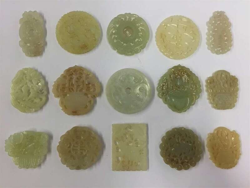 of various forms and comprised of jade, serpentine and bowenite pendants (15).