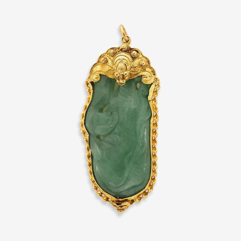 A Chinese 22k gold and jadeite pendant late qing dynasty