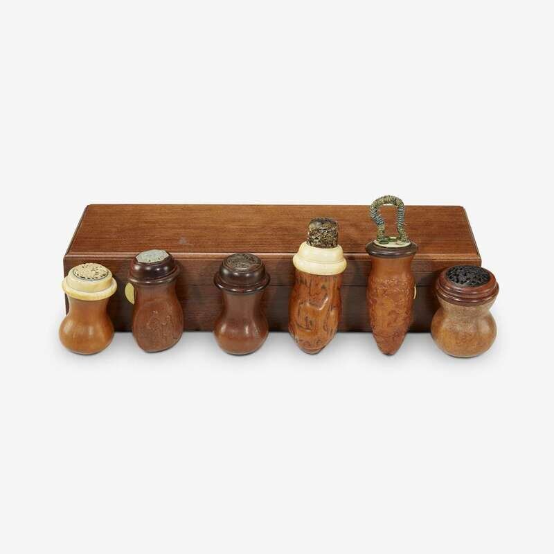 A group of six Chinese moulded gourd cricket cages qing dynasty