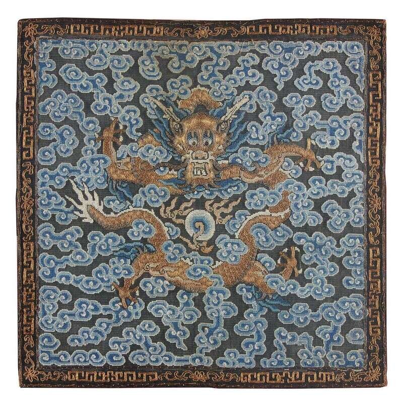 A Chinese imperial petit point dragon rank badge 18th century