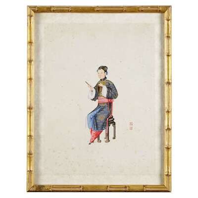 comprising a protrait of a seated lady and a protrait of a offical (2) ink and color on paper, framed sight H of largest: 14 in., 36 cm; W: 10 1/4 in., 27 cm