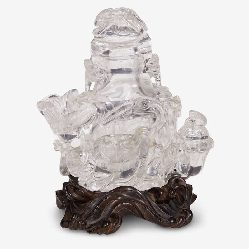A Chinese rock crystal 'lotus' vase and cover late 19th century