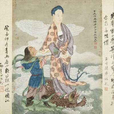 AFTER DING YUNPENG (1547-1628) 19TH CENTURY BUDDHA CROSSING THE SEA ON A TURTLE