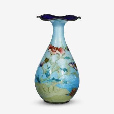 A Japanese ginbari cloisonné vase mark indicating studio of kumeno teitaro