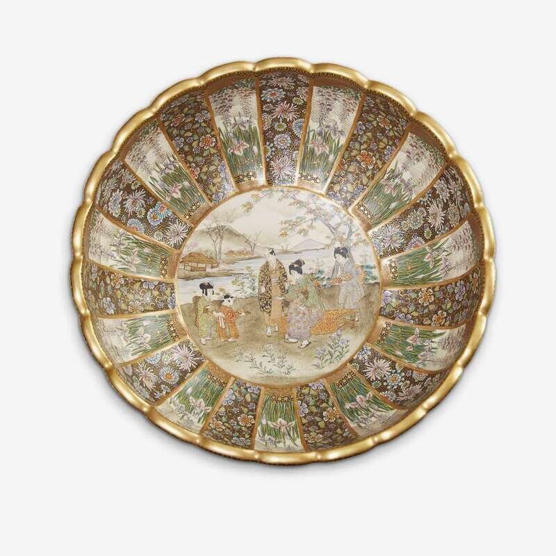 A large Japanese Satzuma bowl makuzu kozan signed, meiji period